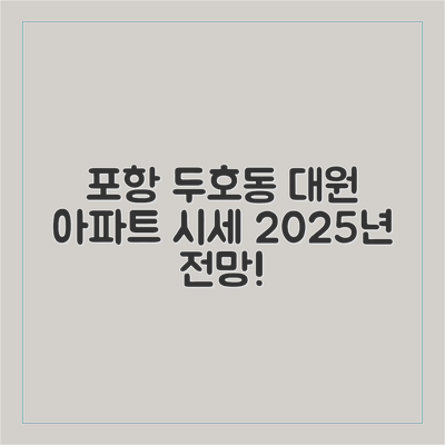 2025년 포항 두호동 시세를 확인하고, 대원 아파트에 투자해보세요