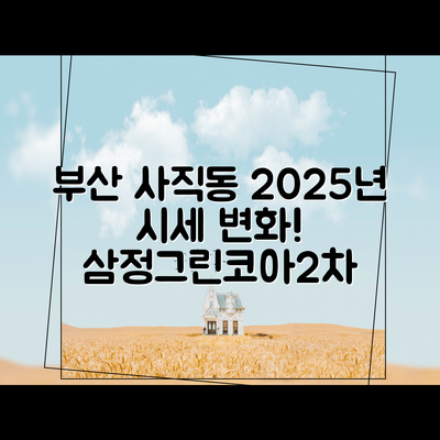 부산시 동래구 사직동의 사직삼정그린코아2차 아파트의 2025년 시세는 여러 요인에 따라 변화할 것으로 예상됩니다. 주요 요인은 아파트 공급량, 인근 교통망 확장, 그리고 주거 환경 개선 등입니다. 이러한 요소들은 특히 2025년 12월 시세에 큰 영향을 미치는 요소들로 분석되고 있습니다.