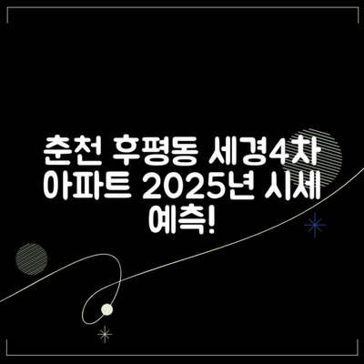 2025년 12월의 강원도 춘천시 후평동 세경4차 아파트 시세는 매매 및 전세 시장에서의 변화가 예상됩니다.