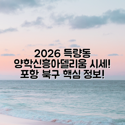 경상북도 포항시 북구 득량동에 위치한 양학신흥아델리움 아파트에 대한 투자 결정을 내리기 위해서는 다양한 관점을 고려해야 합니다. 이 아파트의 2026년 1월 시세와 시장 동향은 투자 시 중요한 요소입니다.