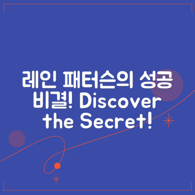 여러분, 레인 패터슨의 성공이 어떻게 이루어졌는지 궁금하지 않으신가요? 그의 이야기는 우리 모두에게 큰 영감을 줍니다. 레인 패터슨이 어떤 과정을 통해 성장했는지 살펴보도록 해요!
